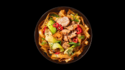 XL Rice noodles, Char Siu pork, pak choi, secret sauce, Asian herbs and fresh chili
